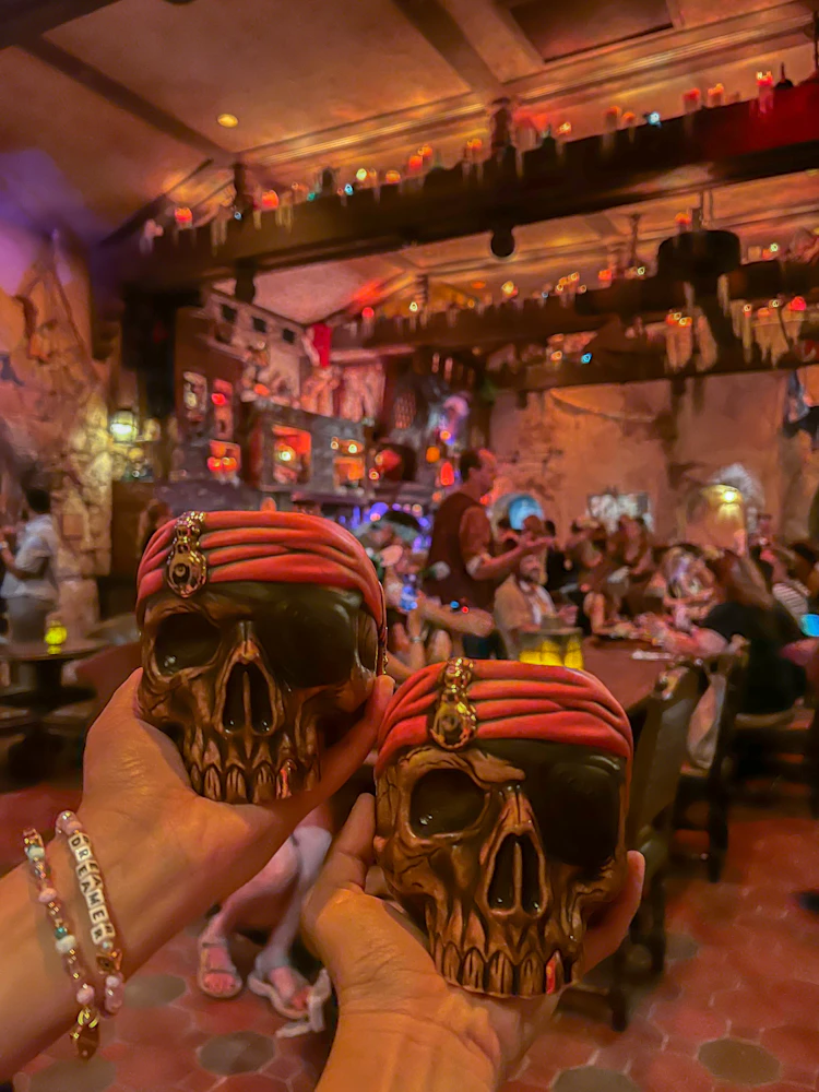 スタッフさんたちも、もちろん海賊。「Yo Ho!」の掛け声とともに、リアルなスカルカップに入ったお酒を運んできてくれます。とにかくノリがよく、言葉が通じなくても一緒に乾杯をして盛り上がれますよ。