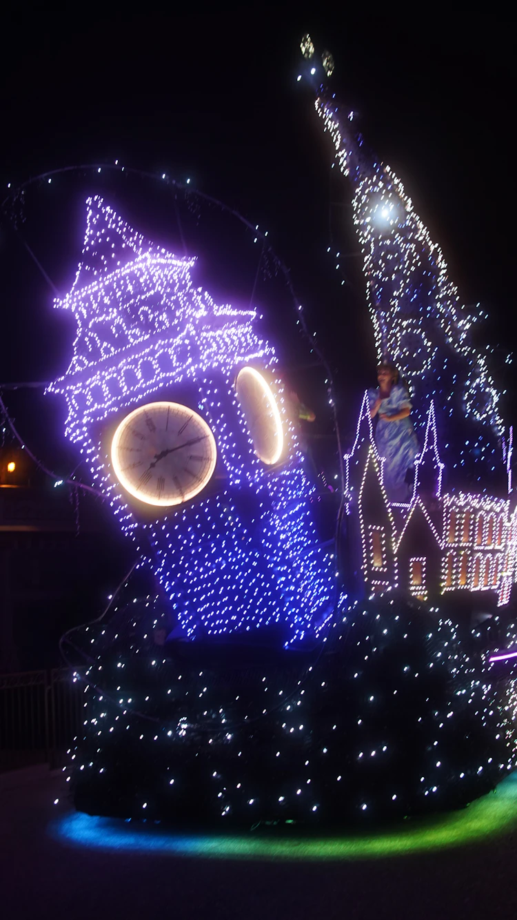 ディズニーの名曲の数々に合わせてフロートやキャラクターが次々と間近に現れるのは、いくつになっても嬉しい体験。なかでも『ピーター・パン』の時計台のフロートが印象的で、ティンカー・ベルが歩いてすぐ近くまで歩いて来てくれたことにも感激でした!