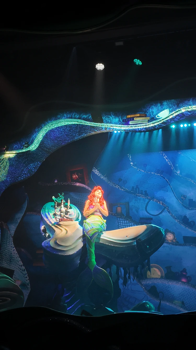 『リトル・マーメイド』のストーリーに沿って場面が展開していくので、ショーが終わったときには映画を1本観終わったような満足感に。アニメーションからそのまま出てきたような、アリエルとエリック王子の演技力も素晴らしかったです。とにかく素敵で、本当に最高でした……!